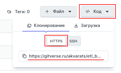 Вставьте это значение в переменную ETL_BLOCKS_REPOSITORY .env файла и укажите в конце адреса через @ целевую ветку репозитория.