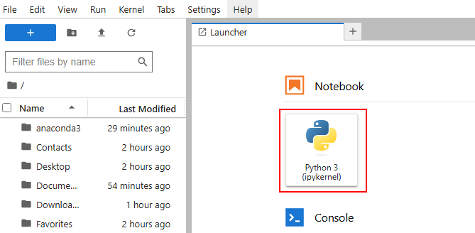 Найдите в окне навигатора Jupyter Lab и запустите его.