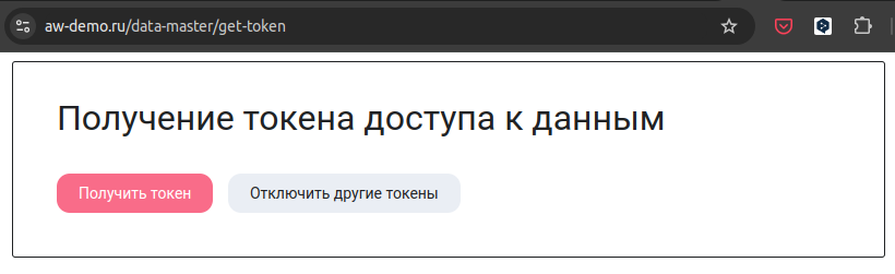 Для получения токена доступа перейдите по URL https://aw-demo.ru/data-master/get-token (если используете свой экземпляр AW, то замените aw-demo.ru на ваш домен).